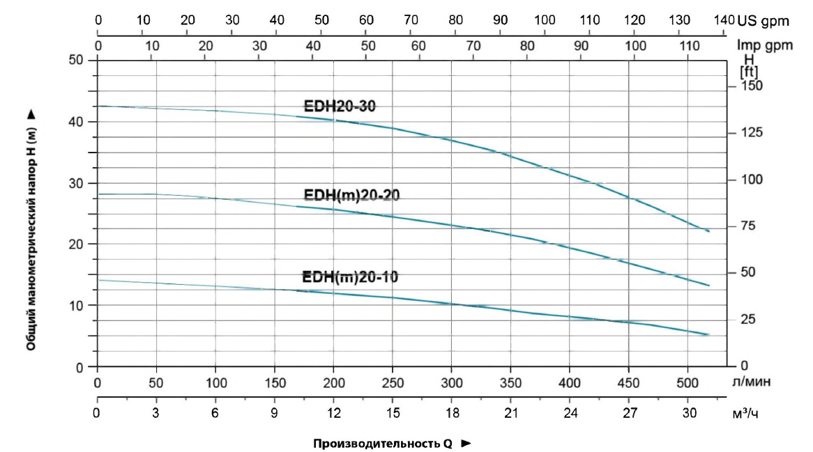 • Номинальный напор 35,3 метров водяного столба.
